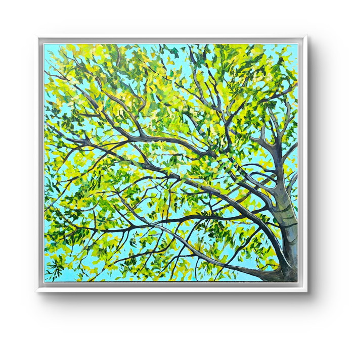 Through the Spring Leaves Acrylic on board, 90.5cm x 90.5cm Original Painting — Not for Sale Ask me about this artwork ← All Artworks →